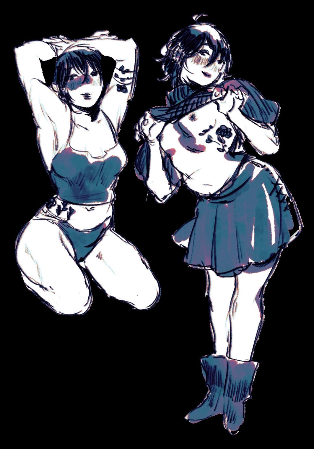 Illustrations with backgrounds, both solo and for couples.While my commissions will always be NSFW, variants can be requested with various degrees of nudity, outfits, different expressions and props.Black and white or full color options available. Both might include a version without rendering if I like them.